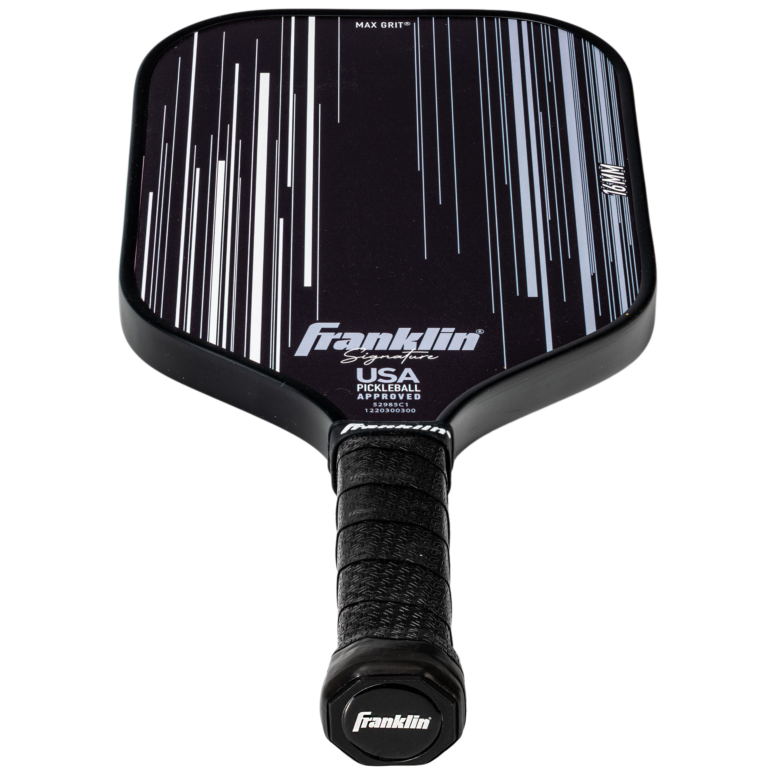 The Franklin Pickleball Signature Series 16 mm Black is designed for athletes who demand top-tier performance. Crafted with the latest technology and precision engineering, this paddle is a game-changer for competitive players. The MaxGrit surface technology offers superior grip, allowing for enhanced spin and control, while the 16mm polypropylene core delivers a durable and powerful foundation for each shot. Whether you're a beginner or a seasoned professional, this paddle is built to perform at the highest level and is USA Pickleball (USAPA) certified for tournament play.