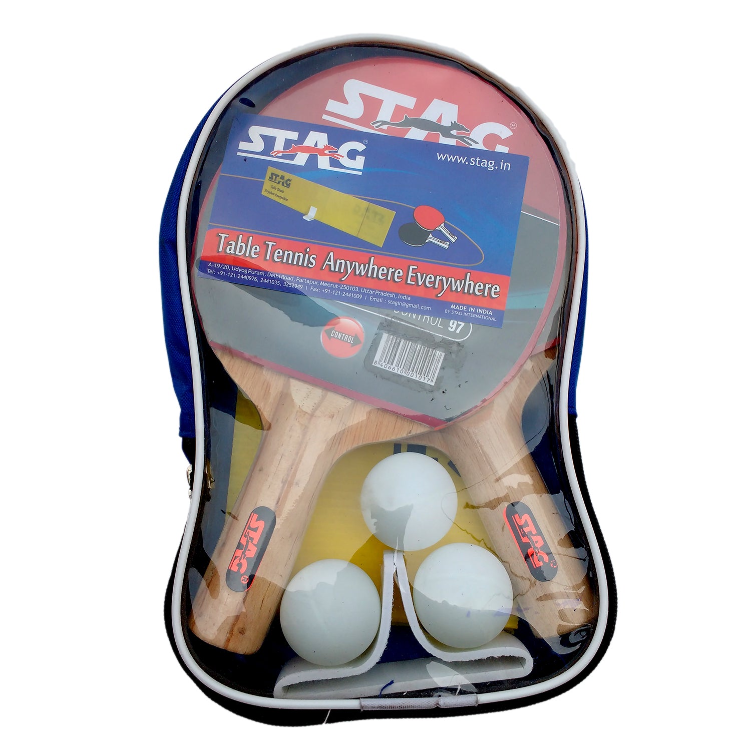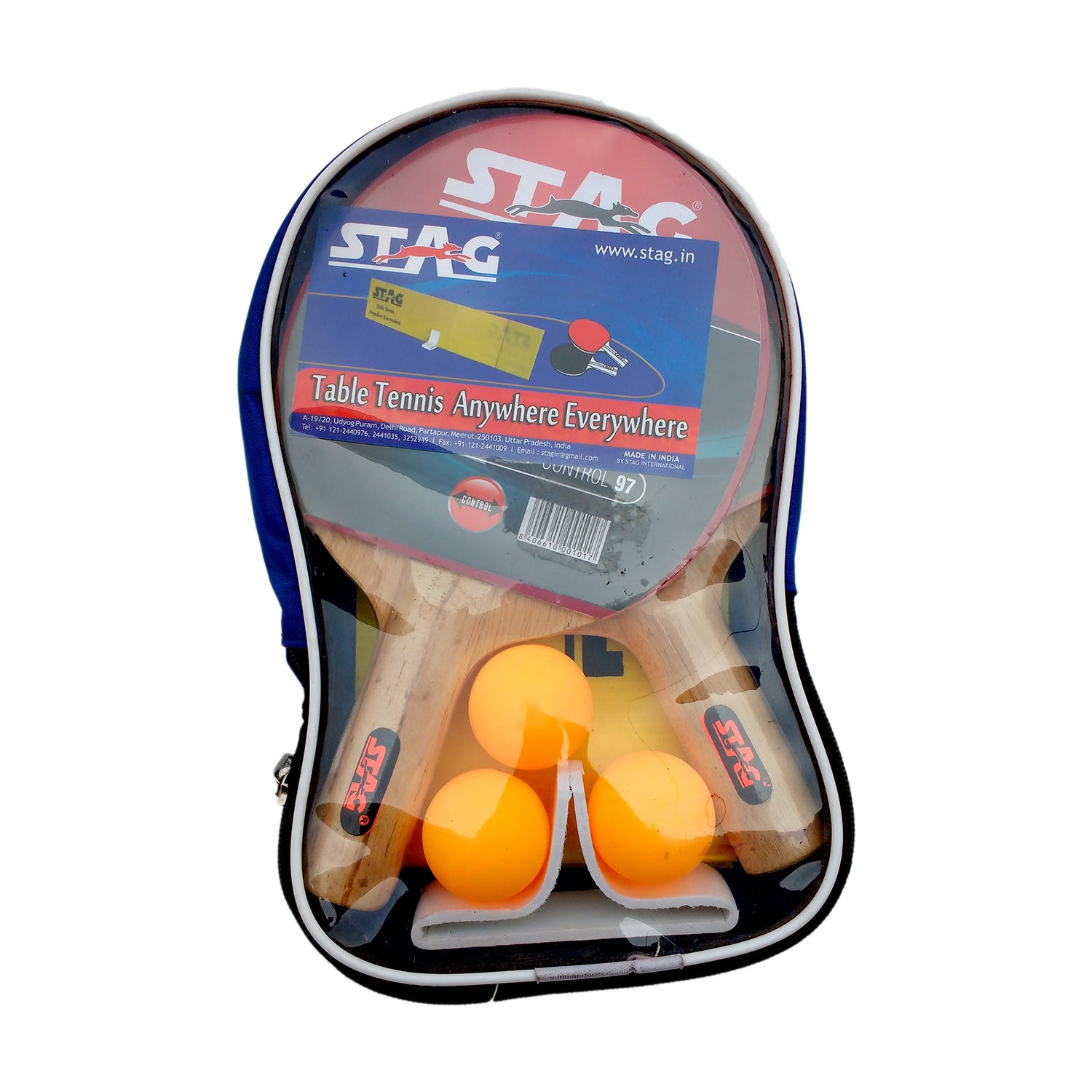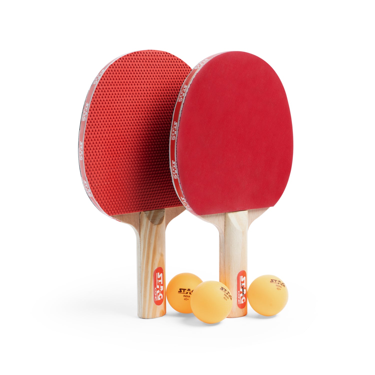 - Packaging Includes: 1 Stag Iconic Anywhere Table Tennis Playset Pack of 1 with 2 Rackets and 3 Balls (Orange)