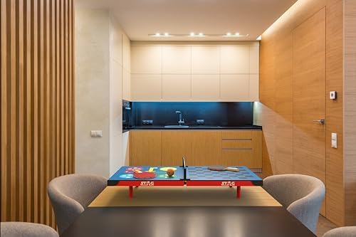 - Packaging Includes: 1 Stag Iconic 4-in-1 Mini Table Tennis Table with Accessories (2 Rackets, 2 Balls, 1 Net and Post Set, Ludo Pieces, Checkers Pieces, and Chessmen).