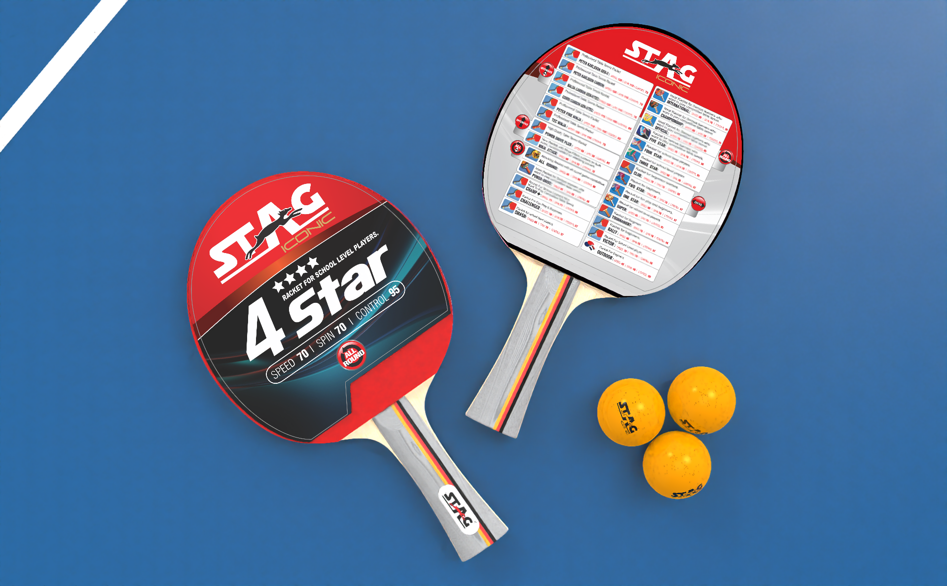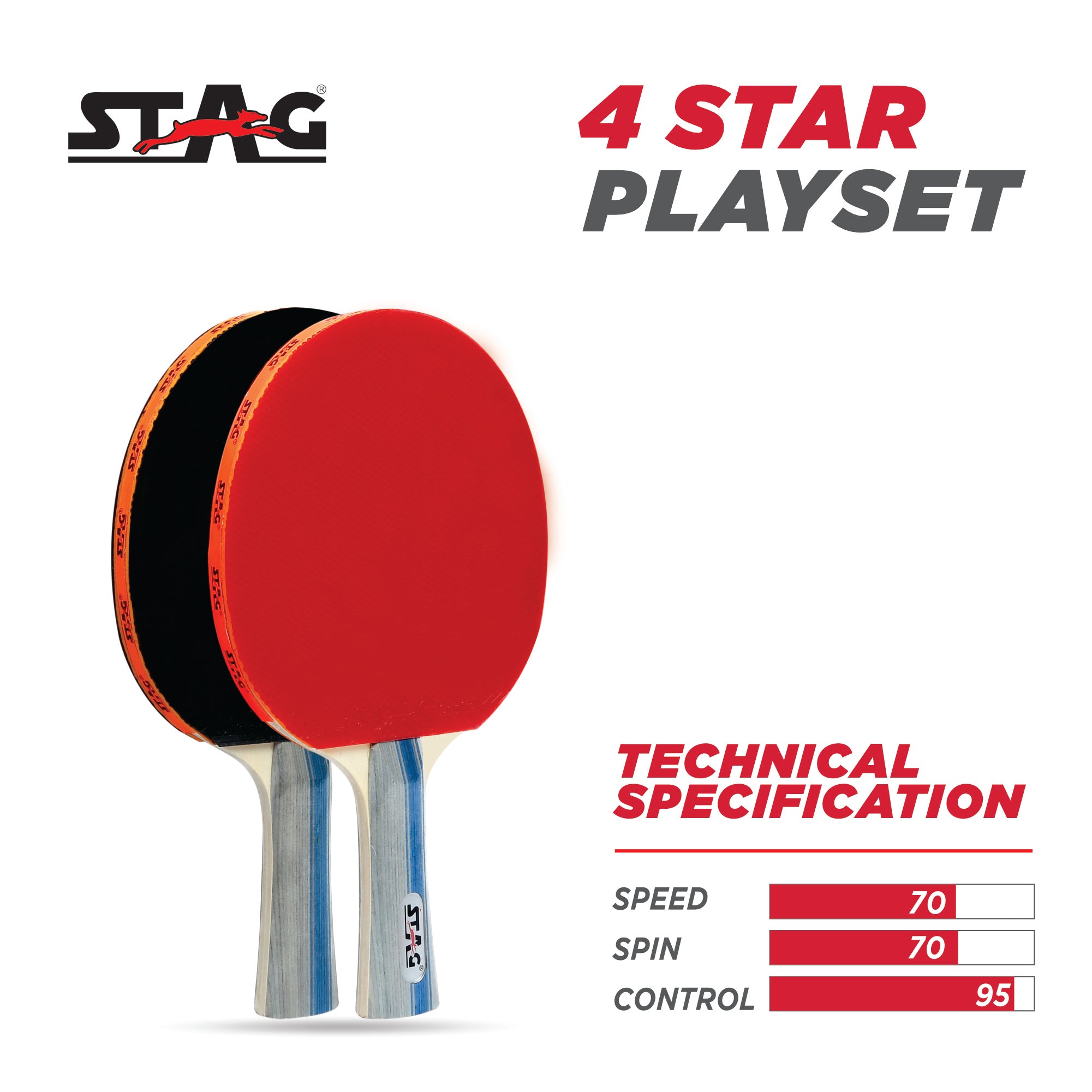 - Packaging Includes: 1 Stag Iconic 4 Star Table Tennis Orange Playset Pack of 1 with 2 Rackets, 3 Balls (Orange)