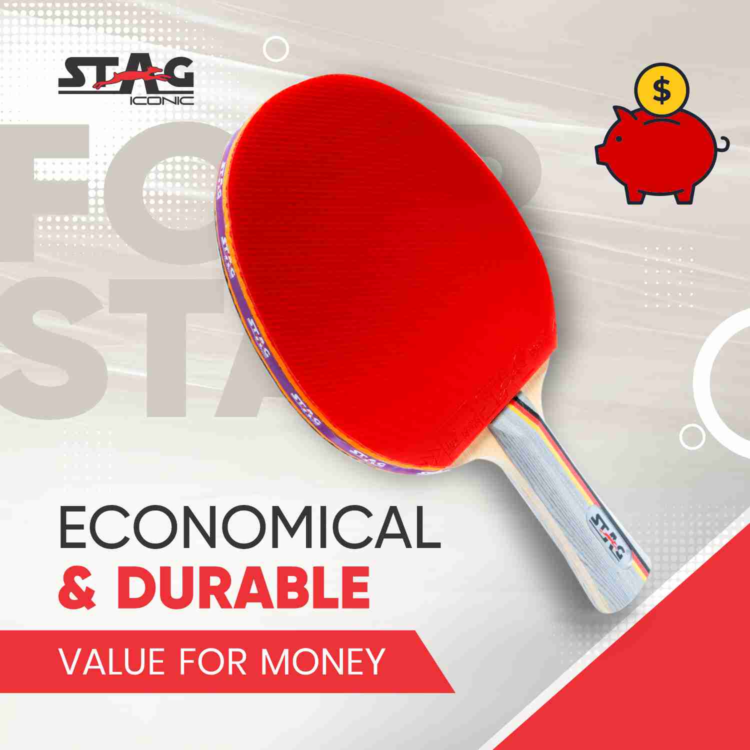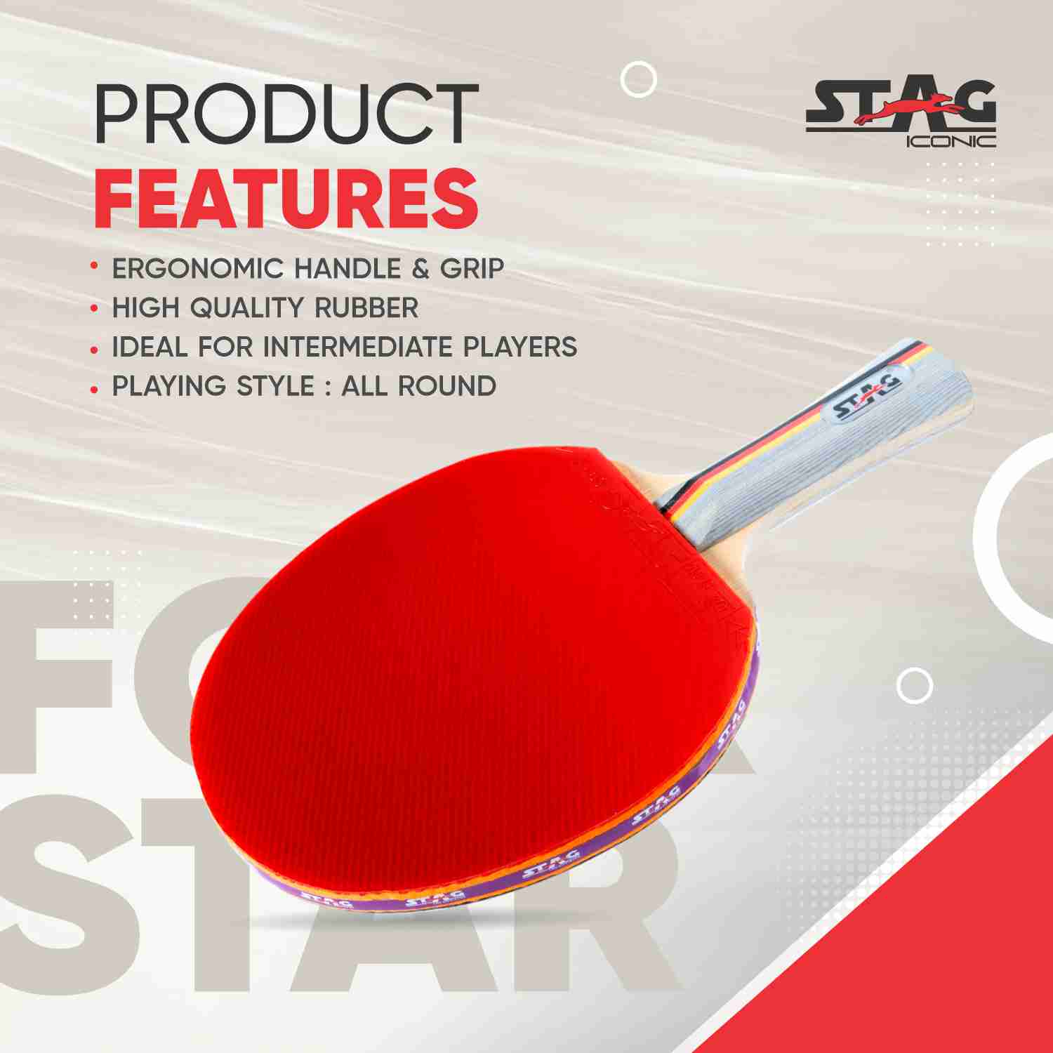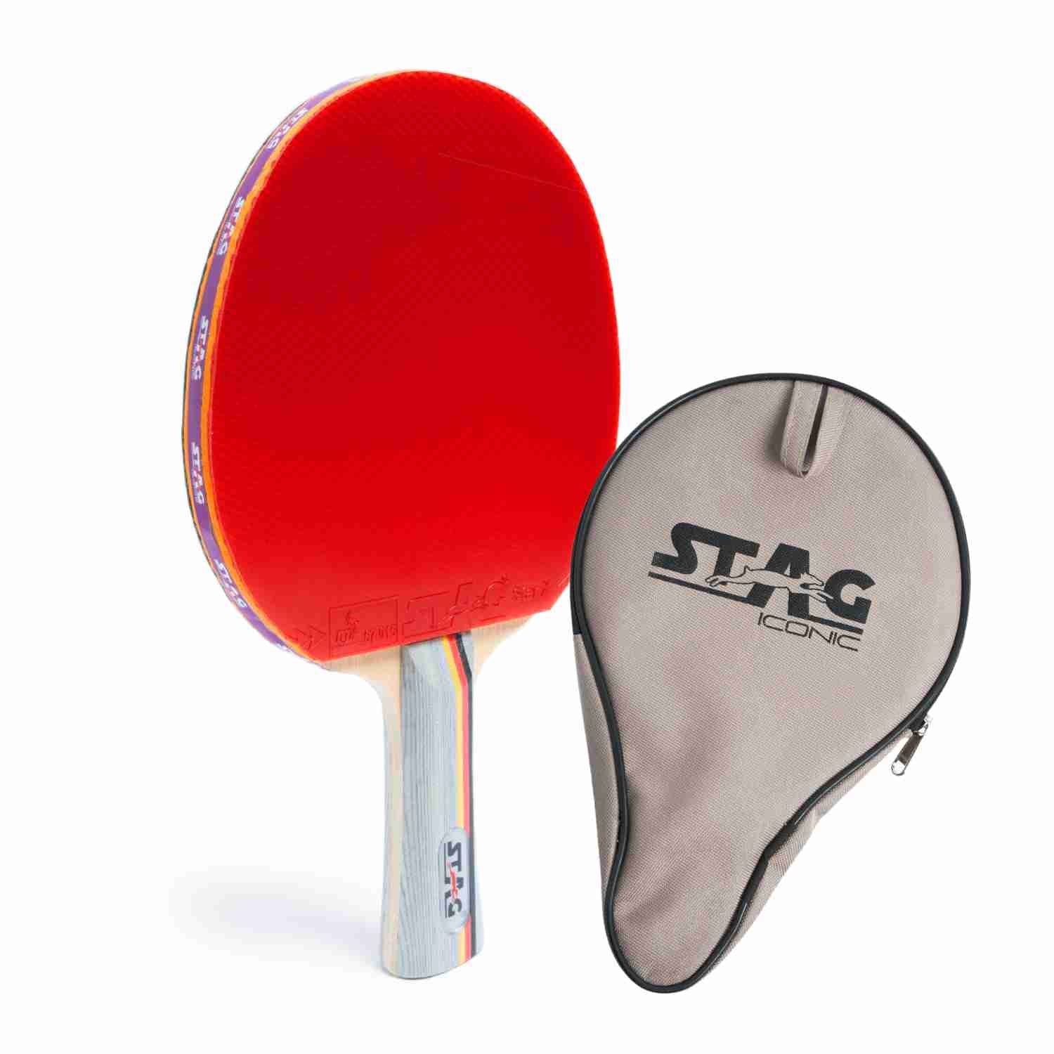 The Stag Iconic 4 Star Table Tennis Racquet is perfect for beginner to intermediate players seeking a balance of control, speed, and power. Its oval-shaped head provides a larger sweet spot for more accurate shots, while the lightweight design ensures quick reactions and reduced fatigue. The stiff construction allows for powerful hits, and the flared handle offers a secure, comfortable grip. Complete with a full-cover pouch, this racquet is designed for easy transport and protection, making it ideal for both practice and matches.