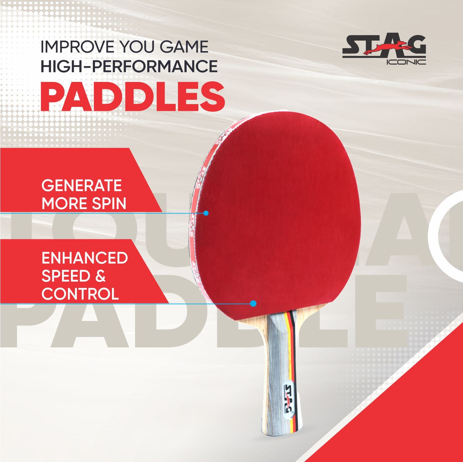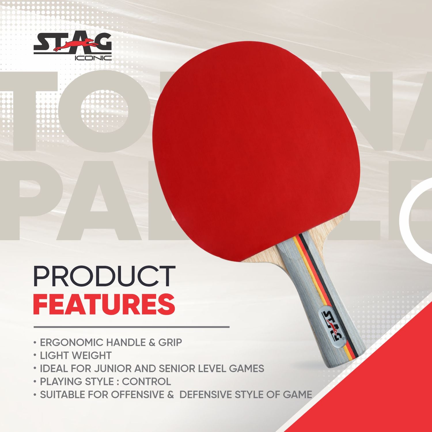 The Stag Iconic Ninja Fire Table Tennis Racquet is expertly designed for advanced players with an offensive playing style. Combining high-speed performance, precise spin control, and ergonomic comfort, this racquet is perfect for elevating your game to a professional level. Its robust construction ensures durability, while the lightweight grip enhances ease of play during extended matches.