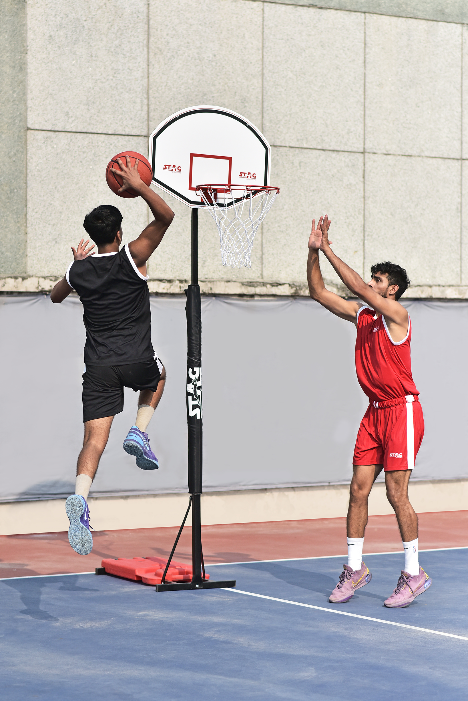Stag Iconic Swiftshot Dual: Adjustable Basketball & Netball Hoop System with Durable Metal Build & Portable Base