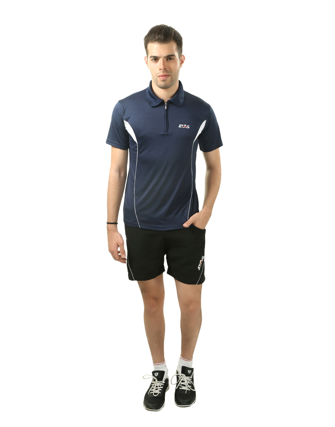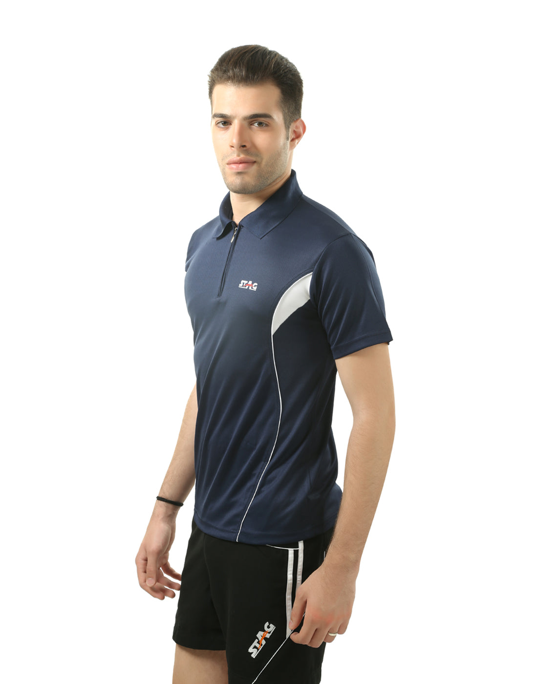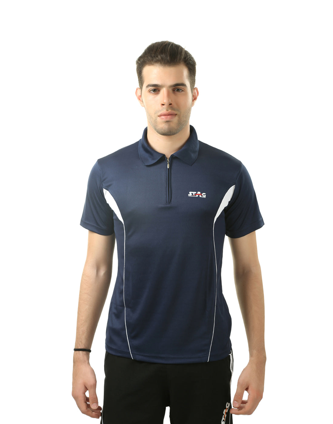 Stay cool, dry, and comfortable in the STAG ICONIC Polo Sports T-Shirtβdesigned for performance and everyday style. Made with lightweight, breathable polyester knit fabric and advanced moisture-wicking technology, it keeps you fresh during workouts or casual outings. The polo collar with zipper adds a sharp, sporty touch, while the stretchable fit ensures easy movement for all sports activities.