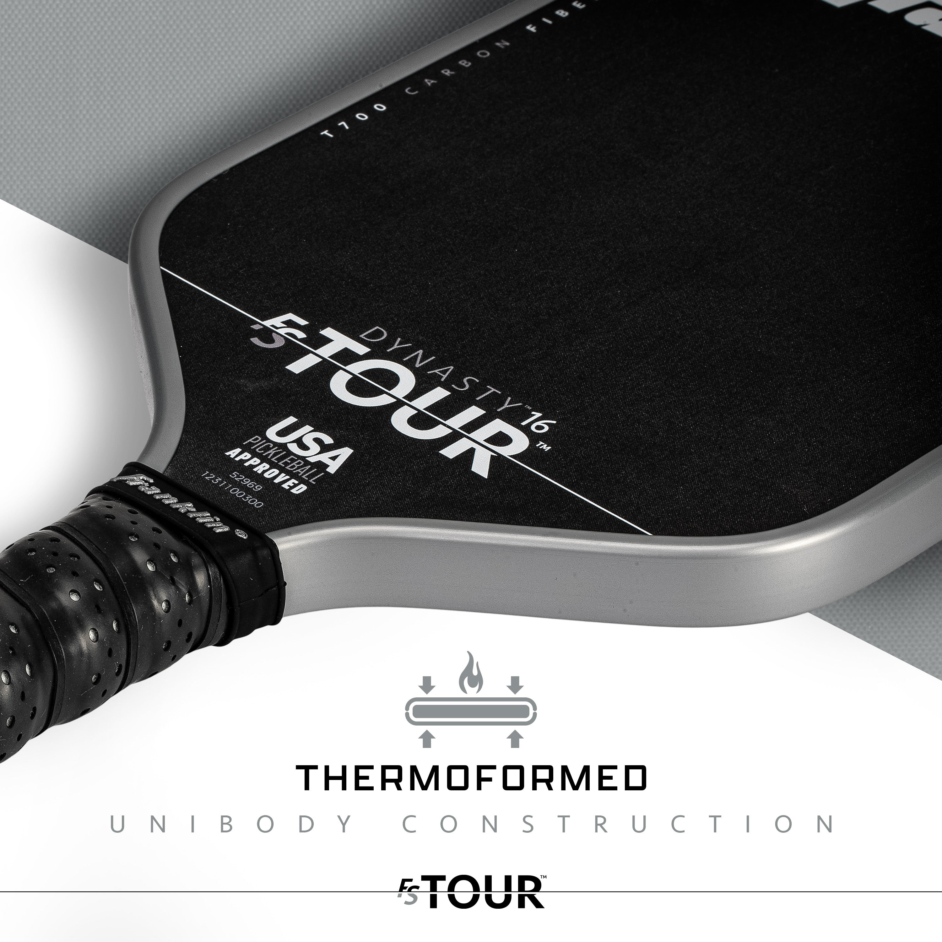 The Franklin Pickleball FS Tour Dynasty 16 mm Gray is the ultimate tool for players seeking unmatched precision and power. Designed with input from Franklin’s pro athletes, this paddle features a premium T700 raw carbon fiber surface for enhanced spin and shot accuracy. Its one-piece construction and polymer core ensure exceptional stability and durability, while the cushioned grip offers maximum comfort during extended play. Officially authorized by USA Pickleball, it’s perfect for both competitive and tournament settings.