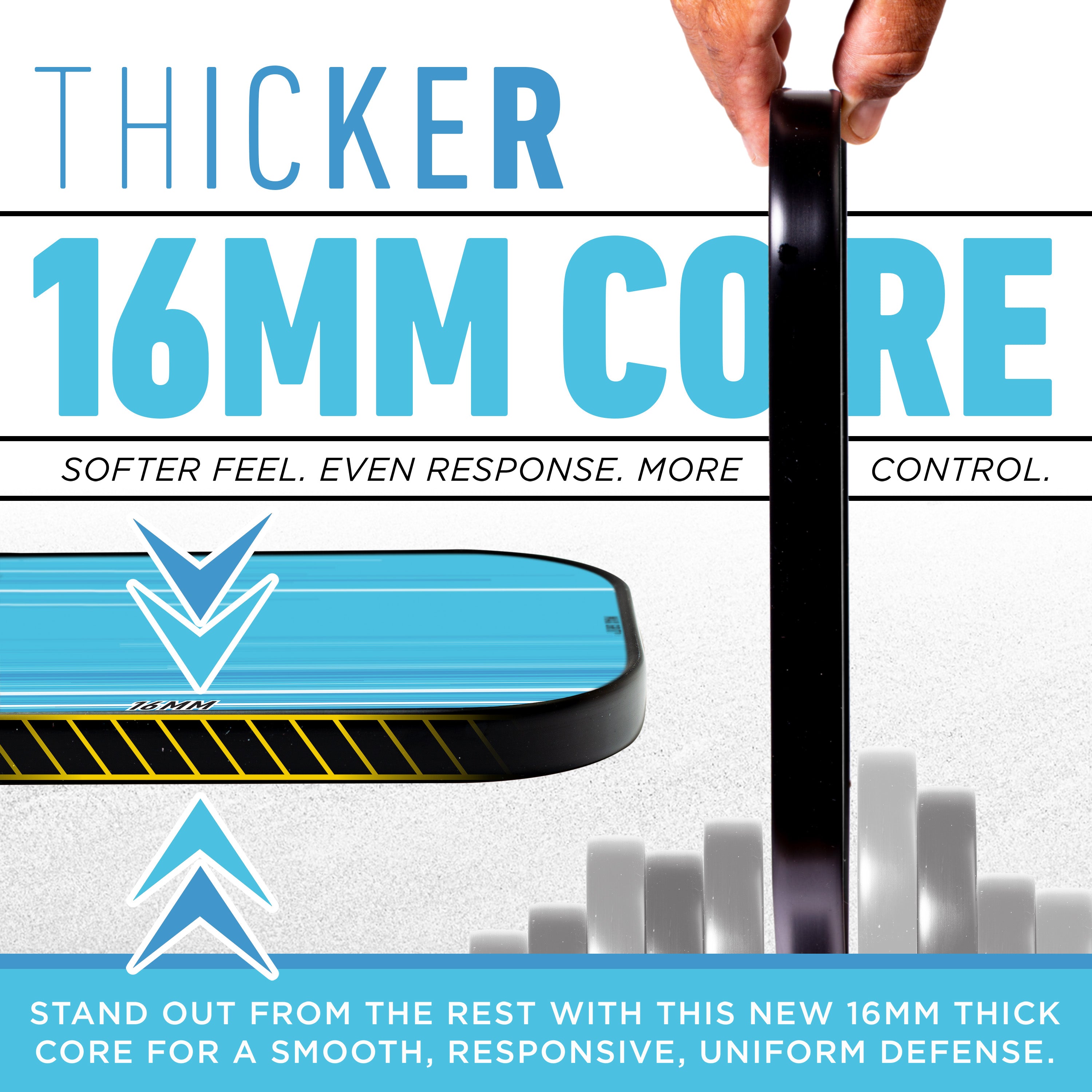 The Franklin Pickleball Signature Series 16 mm Blue is engineered for the serious player who demands high-performance and precision. Built with advanced technology, this paddle features MaxGrit surface technology, enhancing spin and control for precision shot-making. The 16mm polypropylene core ensures durability and power, while the fiberglass surface creates a larger sweet spot, perfect for consistent, powerful hits. Approved by USA Pickleball (USAPA) for competitive and tournament play, this paddle combines durability, control, and innovation, offering a professional-quality experience on every serve and return.