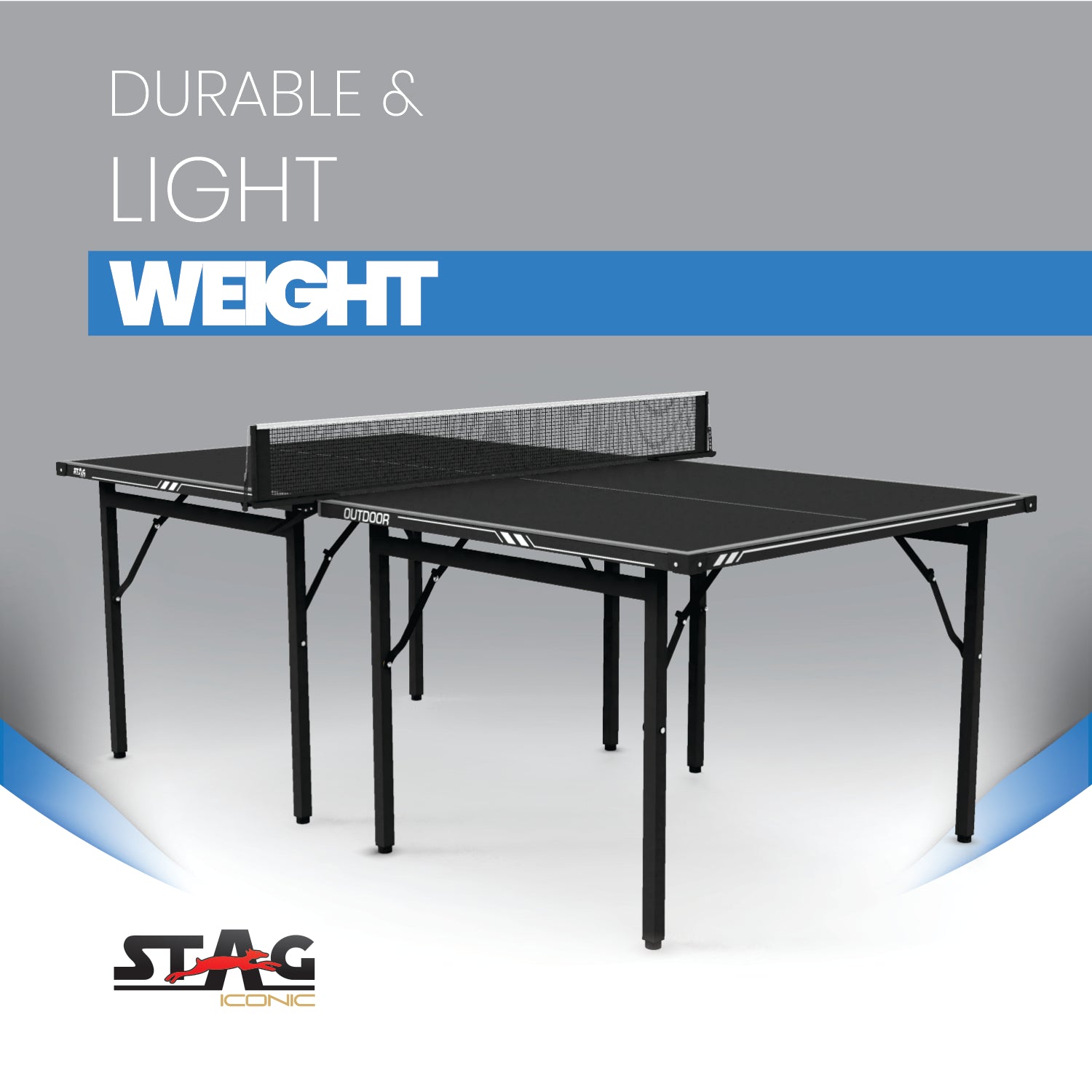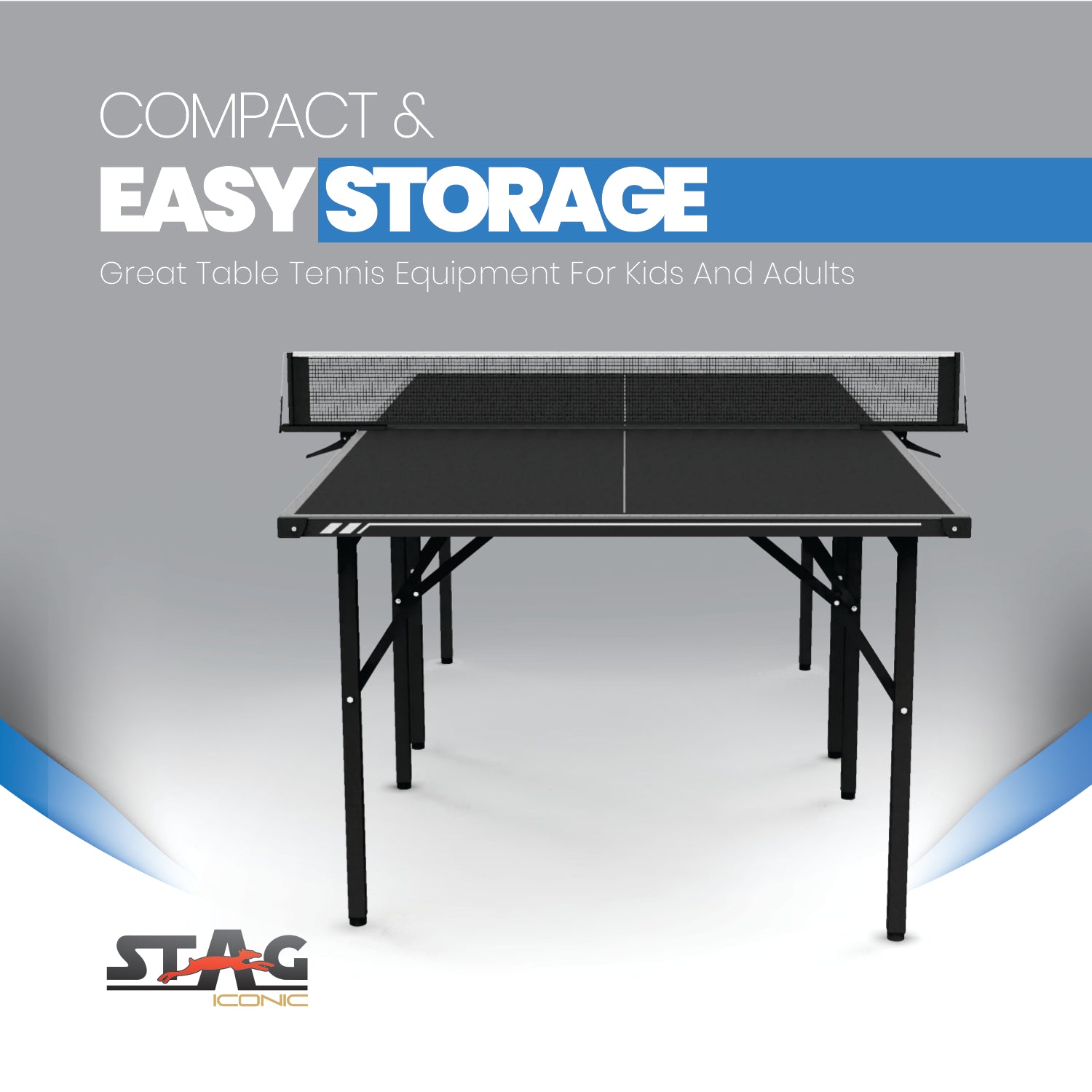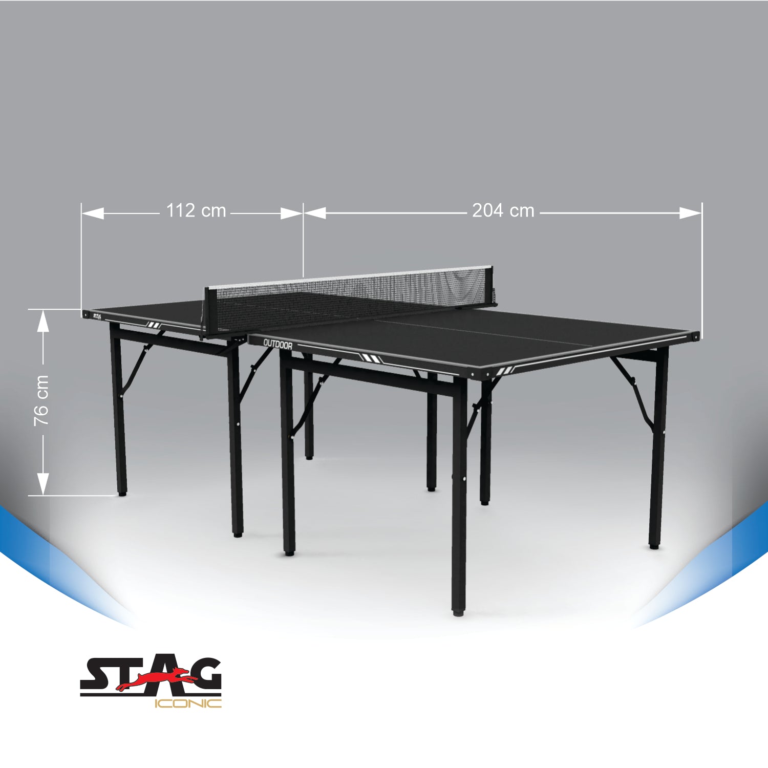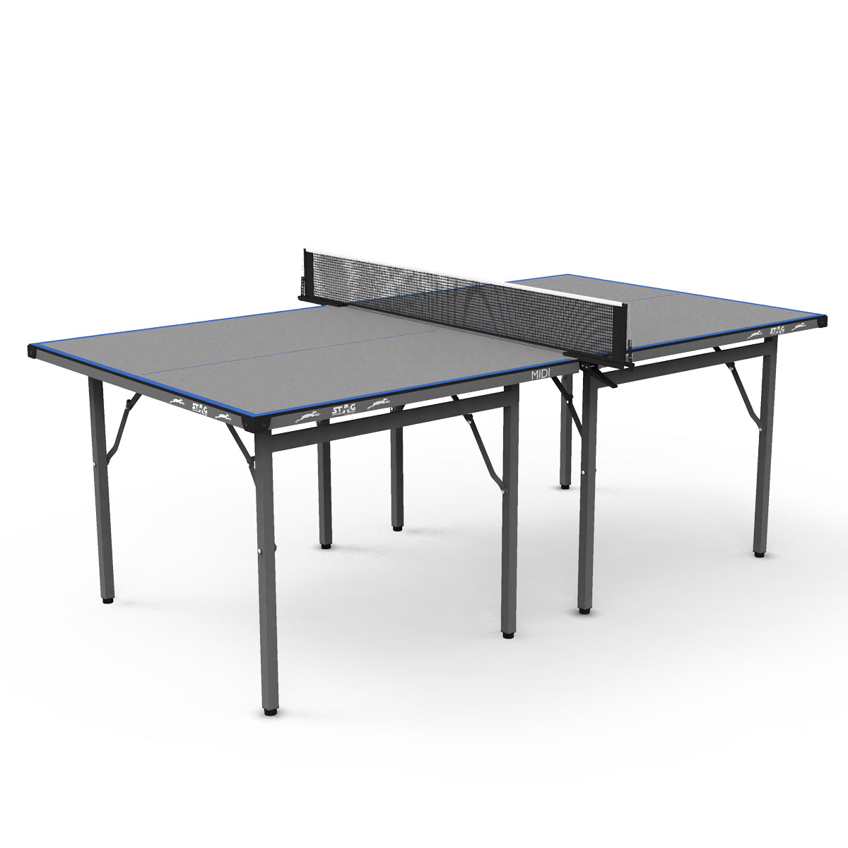 - Packaging Includes: 1 Stag Iconic Midi Black/Grey Table Tennis Table, 1 Clamp Net Set.